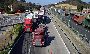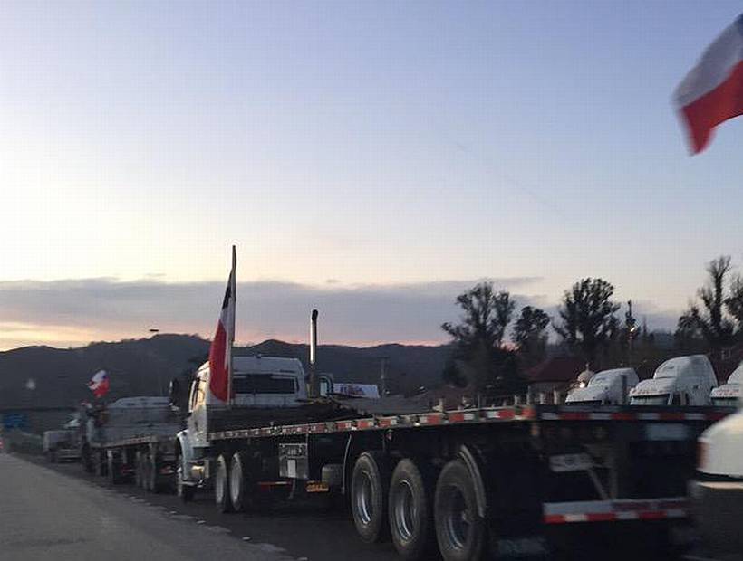 A esta hora varias decenas de camiones provenientes de Valparaíso y San Antonio se ha apostado a un costado de la Ruta 68 sector “Lo Vásquez” para hacer una demostración de fuerza en apoyo a la decena de camiones que este jueves quieren pasar por la Alameda en Santiago para protestar por la violencia en La Araucanía.