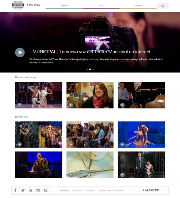 La apuesta es acercar el universo del Municipal a través de una plataforma multimedia que ha apostado por el audiovisual como eje central. Se trata de una serie de videos cortos –de entre 15 segundos y 5 minutos– que tienen objetivos diversos y que se agrupan en secciones dentro del sitio –Inspírate, Vive y Descubre– que invitan al público a ser parte del Municipal desde sus celulares y computadores.