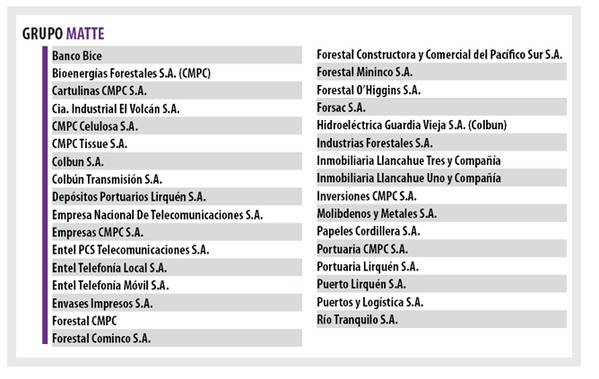 Entre las empresas correspondientes al grupo líderado por Eliodoro Matte, aparece la Compañía Manufacturera de Papeles y Cartones (CMPC), firma involucrada en la llamada ‘colusión del confort´.
