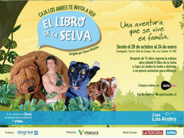Pensando en estas vacaciones de verano y en la entretención de grandes y chicos, las aventuras de Mowgli junto a sus amigos Baloo, Bagheera y Sherekan, vuelven a los escenarios para dar vida a una de las obras familiares más exitosas de los últimos 15 años de la escena local, “El Libro de la Selva”.