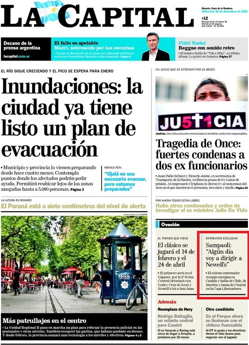 A continuación reproducimos completa la entrevista que el técnico de La Roja, Jorge Sampaoli, dio al diario La Capital de Rosario, donde –para variar- deja entrever que su permanencia como DT de Chile es tan incierta como el precio del cobre.