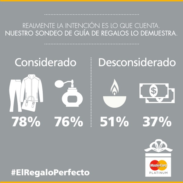 “Al comprar regalos para Navidad o para cualquier otra ocasión, es importante recordar que para los seres queridos es más importante que seas considerado y detallista”, dice Breno Andrade, Marketing al Cliente, MasterCard América Latina y el Caribe. “Vale la pena que hagas tu investigación, y para los usuarios de MasterCard de América Latina y el resto del mundo, tenemos muchos beneficios premium con las tarjetas para facilitar la compra de regalos navideños; desde valet parking en centros comerciales clave para evitarles el estrés de estacionar, hasta servicios concierge para ayudar a los clientes a encontrar ese regalo perfecto.”