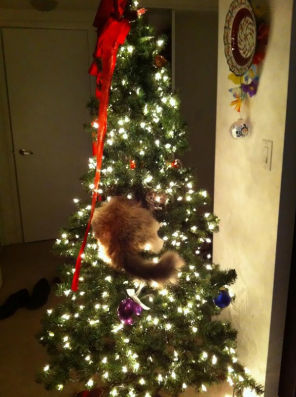 No queda claro si a los gatos no les gusta la Navidad o si les tienen una afinidad especial por ella, ya que les encanta escalar, hurgetear los adornos y morder las luces. Lo divertido es que los gatos son una de las pocas criaturas en el planeta que son capaces de destruir en segundos la Navidad y luego poner caritas de «yo no fui».