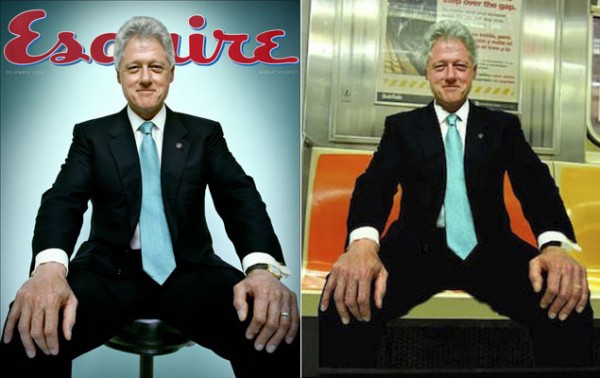El término “manspreading” apareció recién en agosto de 2014, cuando un blog de noticias de Nueva York decidió bautizarlo como “Man Spread” (desparrame masculino) y asi empezó todo. Un mes después, la federación de transportistas de la ciudad de Nueva York anunció una campaña de sensibilización contra el manspreading (lanzada en enero de 2015) y el New York Times se hizo eco del movimiento con el titular “cierra tus piernas”. El término ha alcanzado tales cotas de popularidad que hasta las figuras públicas no se han librado de ser señaladas como manspreadrers, tal fue el caso del ex – presidente Bill Clinton en la portada de la revista Esquire.