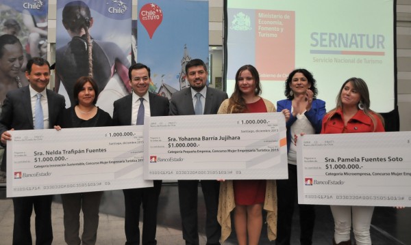 El Ministro de Economía, Luis Felipe Céspedes, en compañía de la Ministra del Servicio Nacional de la Mujer, Claudia Pascual, la Subsecretaria de Turismo, Javiera Montes, el Director Nacional de Sernatur, Omar Hernández, y el Gerente General de BancoEstado Microempresas, Emilio Vélez, dieron a conocer esta mañana las tres ganadoras del sexto concurso Mujer Empresaria Turística, cuyo propósito es reconocer los esfuerzos liderados por mujeres empresarias que desarrollan alguna faceta del turismo.