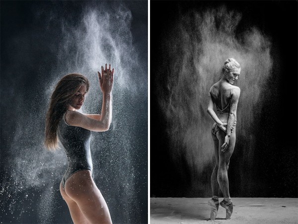 “The Mirages” (los espejismos) es su más nueva creación, donde inmortaliza los movimientos llenos de gracia de bailarinas con la ayuda de explosiones de harina, que crean una conjunción de movimiento y polvo.