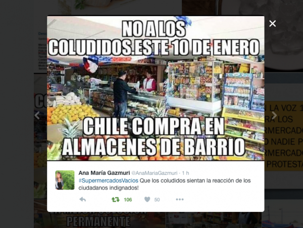 Personas de todo Chile están publicando a través de las redes sociales, tanto memes como fotografías que magnifican como están reaccionando en contra de la colusión de los supermercados, el hashtag #diasinsupermercado y #supermercadosvacios ya son trending topic: