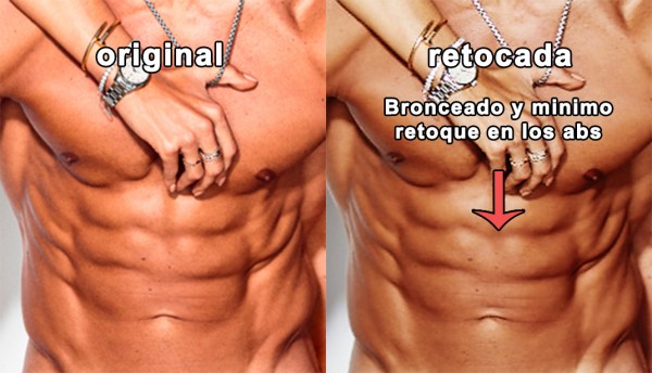 ( Lo que hicieron fue un alisado en la piel para eliminar imperfecciones y lo que se llama «saturación» para darle un tono más bronceado a las fotos)