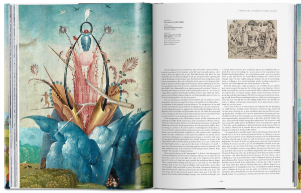 Bajo la supervisión del historiador del arte Stefan Fischer, experto en El Bosco, el libro analiza los numerosos elementos impactantes que pueblan cada escena, de los seres híbridos mitad hombre y mitad animal al uso pictórico de refranes y modismos. La obra concede una atención especial a la pintura más célebre de El Bosco, el hipnótico e inquietante tríptico El jardín de las delicias.