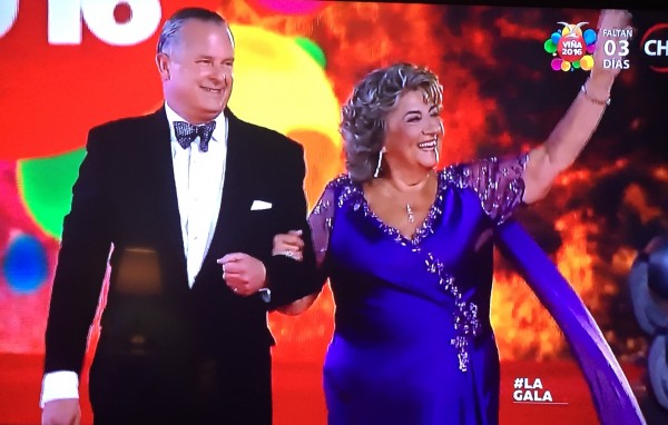 La alcaldesa de Viña del Mar, la señora Virginia Reginato lució en la alfombra roja un vestido color azul con aplicaciones brillantes, muy a su estilo de madrina de matrimonio con su inigualable peinado inamovible.