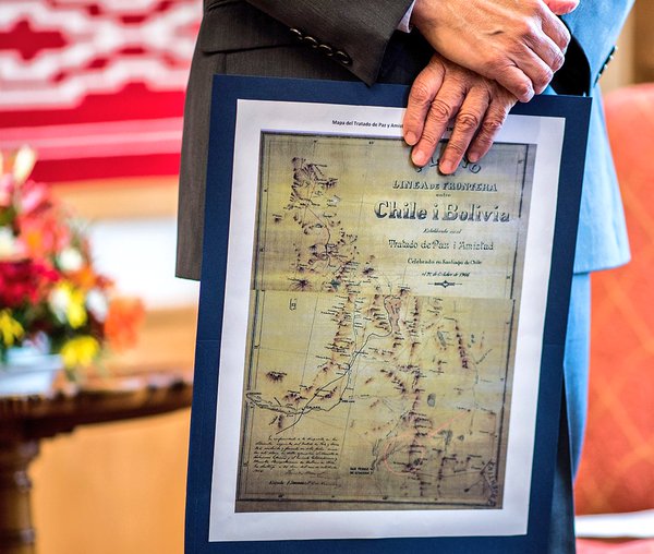 “Este mapa es decidor y es un antecedente muy importante para nosotros, porque Chile siempre ha defendido la integridad del Tratado de 1904 que fijó las fronteras de manera definitiva entre ambos países”, afirmó el canciller Muñoz.