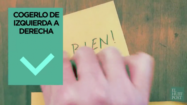 Haremos lo siguiente: Escribimos el mensaje que queremos dar o recordar y a continuación arrancamos la hoja rápidamente tirando hacia arriba. Una vez en la mano, descubrimos que la hoja ya no es lisa, su parte de abajo (la no adhesiva) está curvada y al pegarla en otra superficie queda más o menos así.
