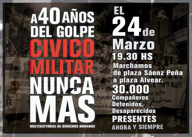 Este jueves, en el segundo día de la visita del Presidente de Estados Unidos, coincide con los 40 años del golpe de Estado del 24 de marzo de 1976, por ello diversas organizaciones de derechos humanos y políticas han convocado a marchas y actos públicos tanto en Buenos Aires como en el resto de la Argentina.