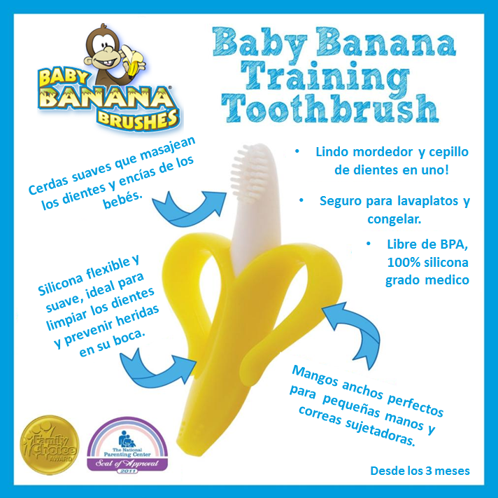 Se trata de Baby Banana, un innovador mordedor/cepillo de dientes que se puede utilizar desde los 3 hasta los 12 meses de edad. “Son ideales para ayudar a masajear suavemente las encías y dientes de los bebés, ayudándolos a aliviar temporalmente el dolor en la etapa de dentición. Con ello, se logra disminuir la ansiedad y llanto de los niños”, asegura Roberto Mayerson, dueño de la tienda Bebé Urbano.