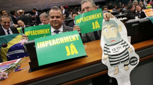 Por su parte, el jefe del bloque del Partido de la Social Democracia Brasileña, Antonio Imbassahy, afirmó que la presidenta «cometió crimen de responsabilidad y colocó a Brasil en medio del mayor escándalo de corrupción del planeta», además de «haber mentido en la campaña electoral de 2014».