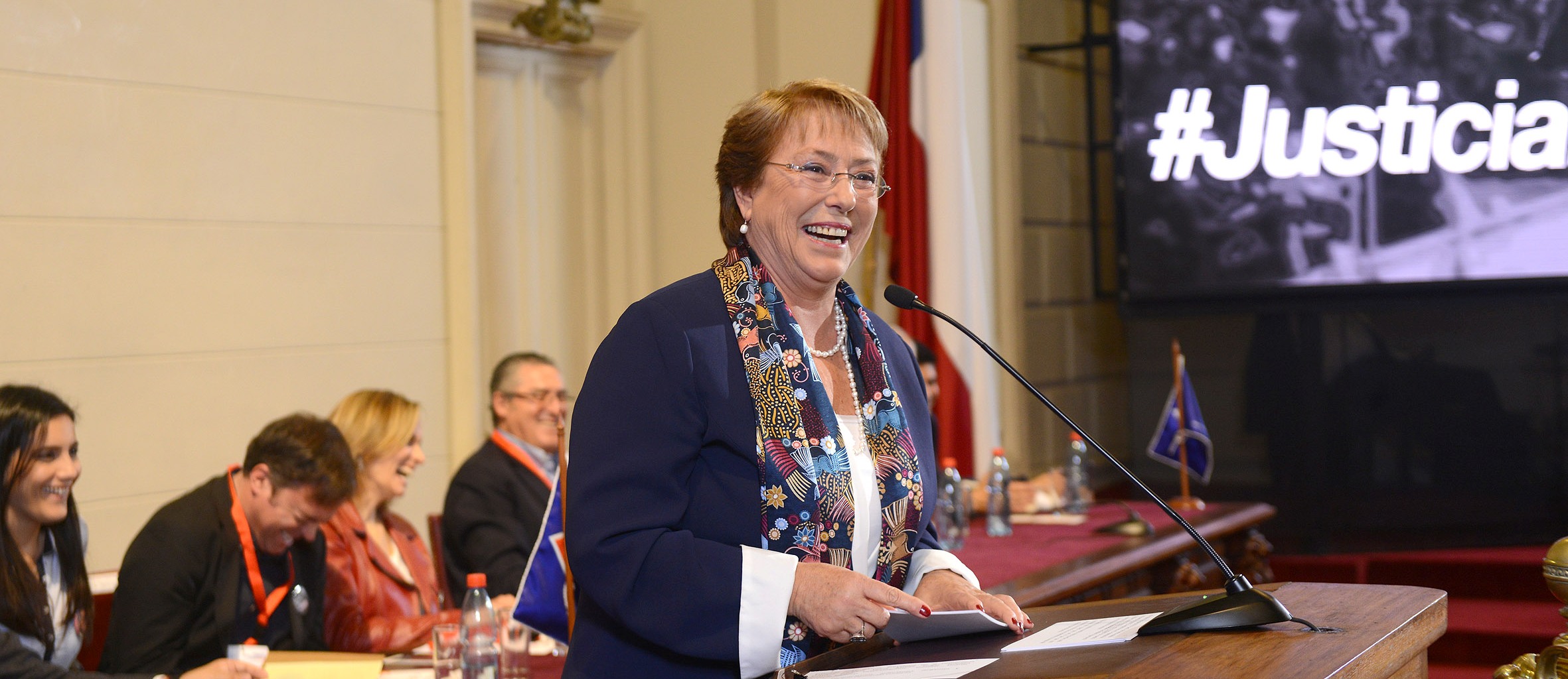 Sin nombrarlo, la Presidenta aprovechó la ocasión para contestar las declaraciones de Sebastián Piñera, quien dijo que las reformas estaban basadas “en una ideología socialista” y las calificó como “un error”.