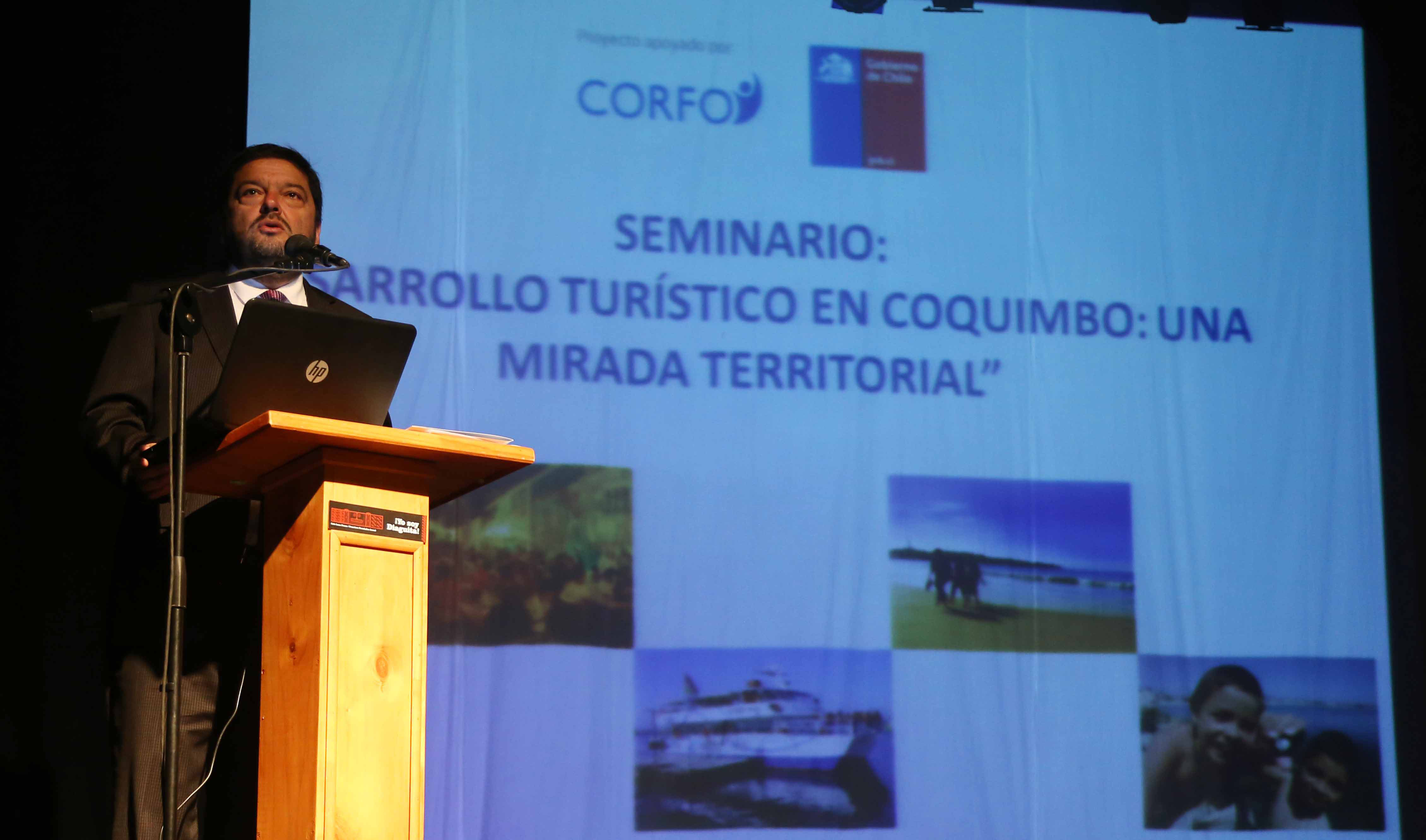 La ronda de presentaciones comenzó con el Gerente de la Corporación Municipal de Turismo de Coquimbo, Luis Pastén González, quien explicó los alcances del proyecto Nodo Borde Costero Coquimbo, instancia ejecutada por dicho ente y financiada por CORFO, la cual va en directo beneficio de 70 locatarios de Peñuelas, La Herradura, Totoralillo, Guanaqueros y Tongoy. “El gran desafío hoy en día es cómo mejoramos la llegada de visitantes y aumentamos las ventas e ingresos de nuestros empresarios, sobre todo en temporada baja. Eso es lo que buscó este seminario, la posibilidad de generar excelentes productos, rutas y servicios durante todo el año”, afirmó.