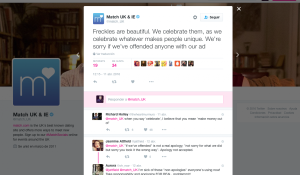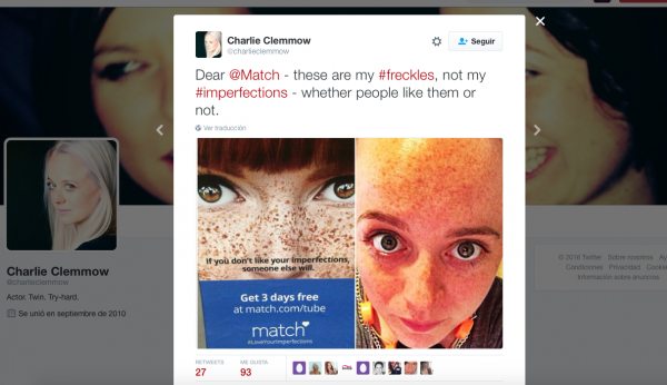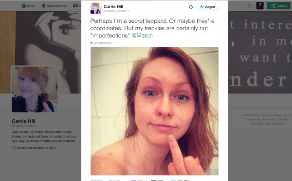 «Hola Match. Creo que deberías reconsiderar tu última campaña. No hay nada malo en las pecas».