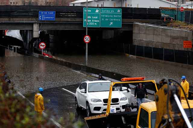 Esta mañana el ministro de Obras Públicas, Alberto Undurraga (DC), revisó la situación del llamado nudo Kennedy (Exrotonda Pérez Zujuvic) donde el río Mapocho se salió en la madrugada del domingo inundando la avenida Andrés Bello, Providencia y provcando serios daños a vecinos y comercios del área inundada.