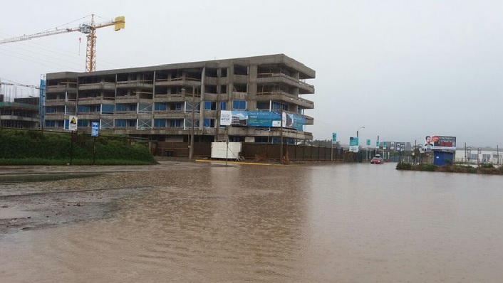 «Esto fue lo que hicieron recién en la playa, vino una pala mecánica, hizo esta excavación para sacar todo el agua que se acumuló en la entrada de los edificios que están construyendo y lamentablemente la playa queda cortada en dos«.