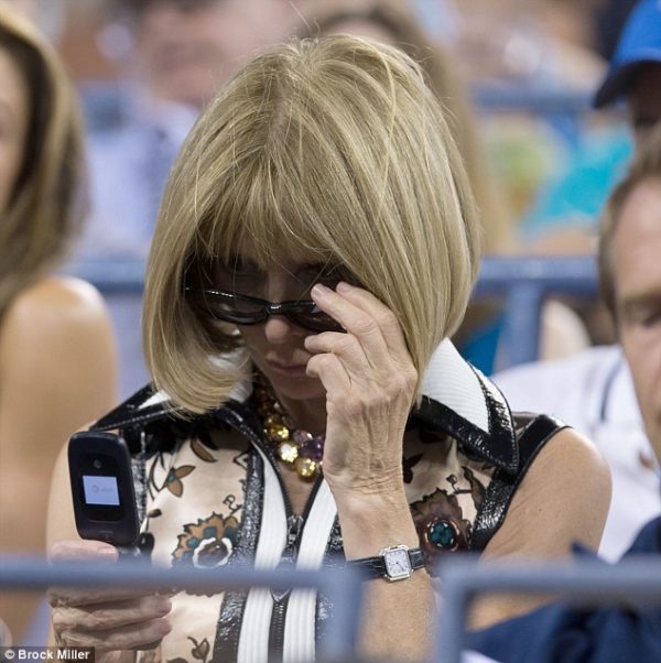La editora de la revista Vogue Anna Wintour tiene varios teléfonos, pero prefiere los plegables.
