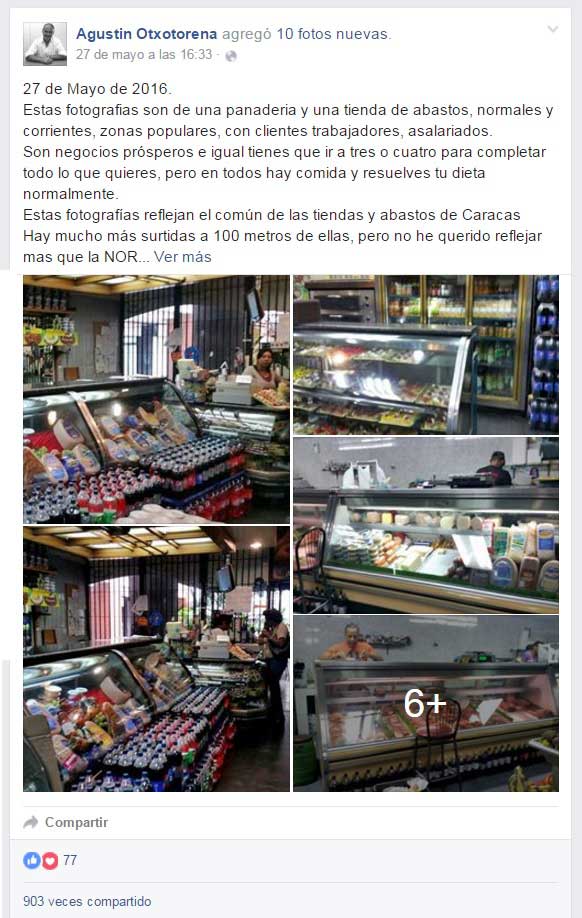 El día “27 de Mayo de 2016. 27 de mayo a las 16:33: Estas fotografías son de una panadería y una tienda de abastos, normales y corrientes, zonas populares, con clientes trabajadores, asalariados.