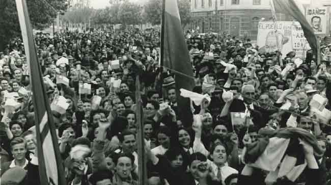 Acto de campaña del candidato Carlos Ibáñez del Campo quien postula a la reelección por un segundo período para las elecciones presidenciales de 1952. Alejandro Hales fue clave en la organización de su campaña. Septiembre 1952