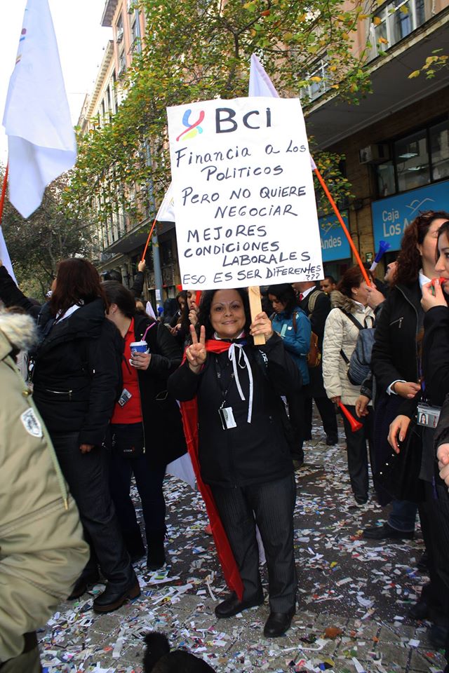«Estos procesos no se traducen en mejoras para los trabajadores (…) Luis Enrique Yarur apoya con millones a la UDI, pero con nosotros él no conversa. Apenas pasaron los buenos oficios se pararon y dijeron que no, porque no quieren dejar el antecedente de una negociación colectiva exitosa. Nosotros les generamos el 70% de las utilidades al banco, estamos disconformes con la propuesta y queremos mejoras salariales, por eso estamos movilizados«, afirmó Riquelme.