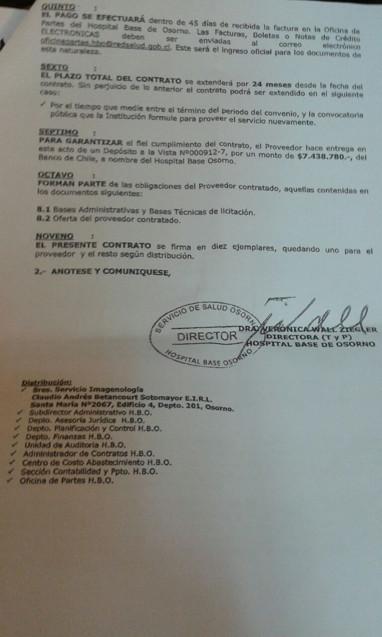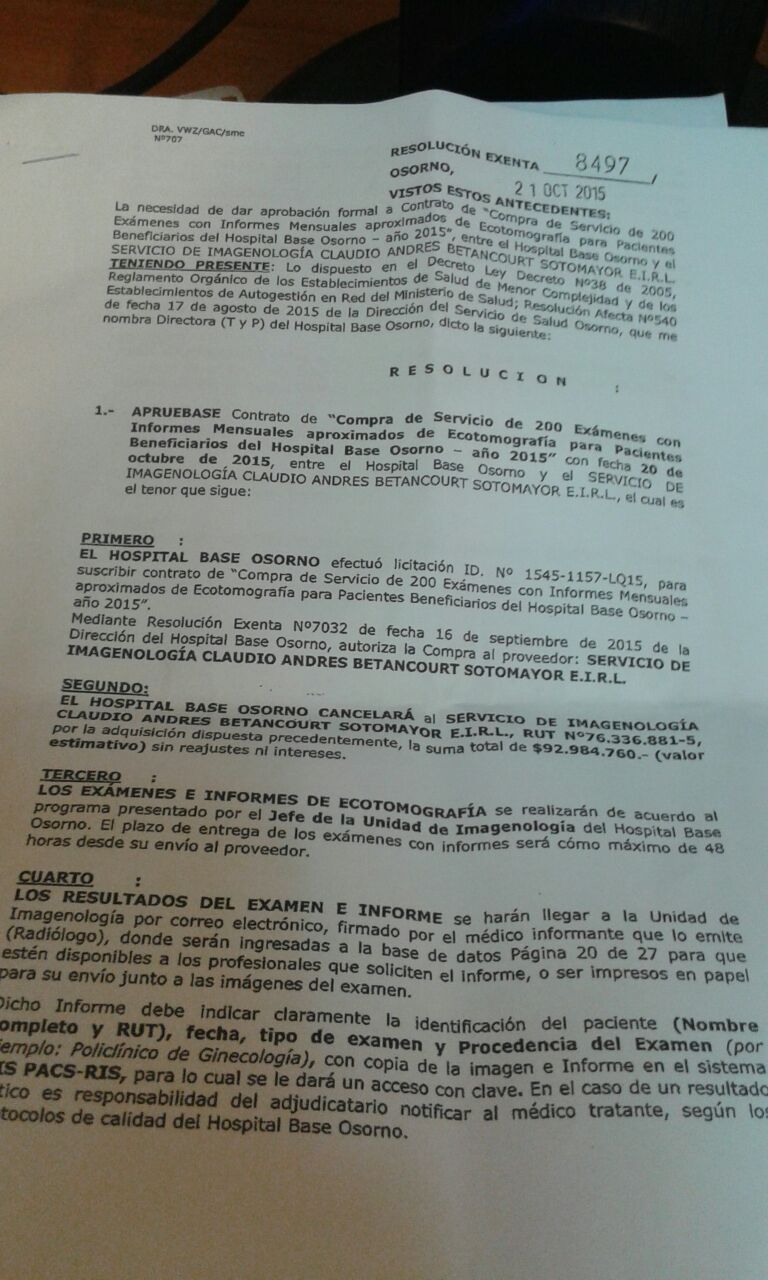 Es el caso del doctor Claudio Betancourt Sotomayor, quien recibe un sueldo de 4,7 millones de pesos mensuales como médico en el Hospital de Osorno por 44 horas semanales. Sin embargo, se le cancela (como honorarios) por la realización de 200 ecografías mensuales la suma de 19 mil pesos cada una, siendo que el valor FONASA es menor (17 mil pesos), o sea un sobreprecio de 2 mil pesos en cada examen.
