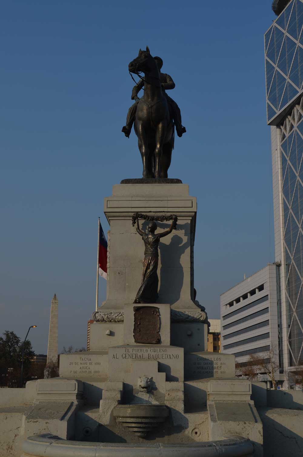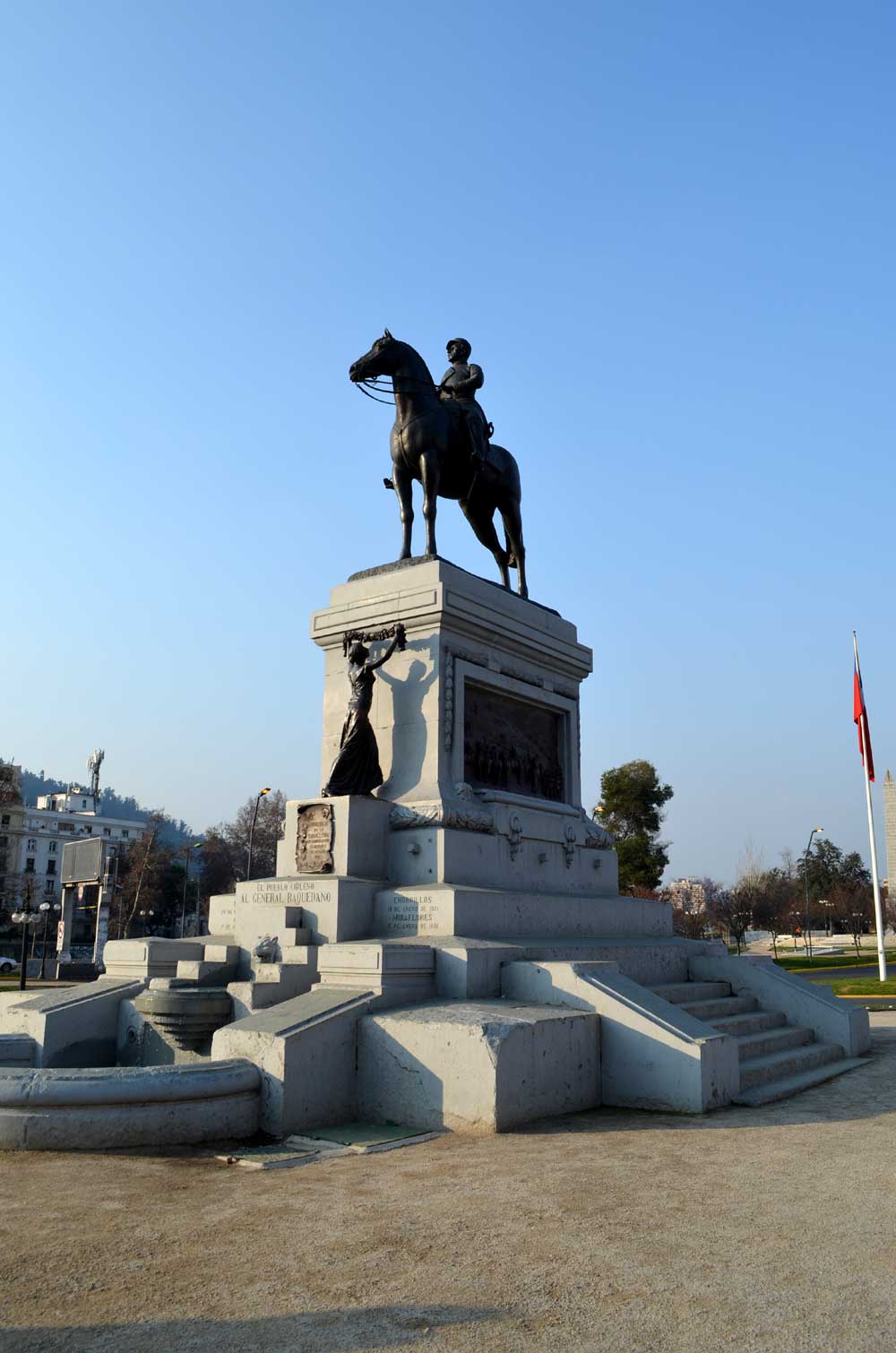 Sin duda debe ser el monumento más famoso de Chile: La estatua ecuestre al general Manuel Baquedano y tumba del Soldado Desconocido, emplazada en un punto estratégico de la ciudad de Santiago, en el límite oriente de Santiago con Providencia, una suerte de rotonda que fue inaugurada el 18 de septiembre de 1928.