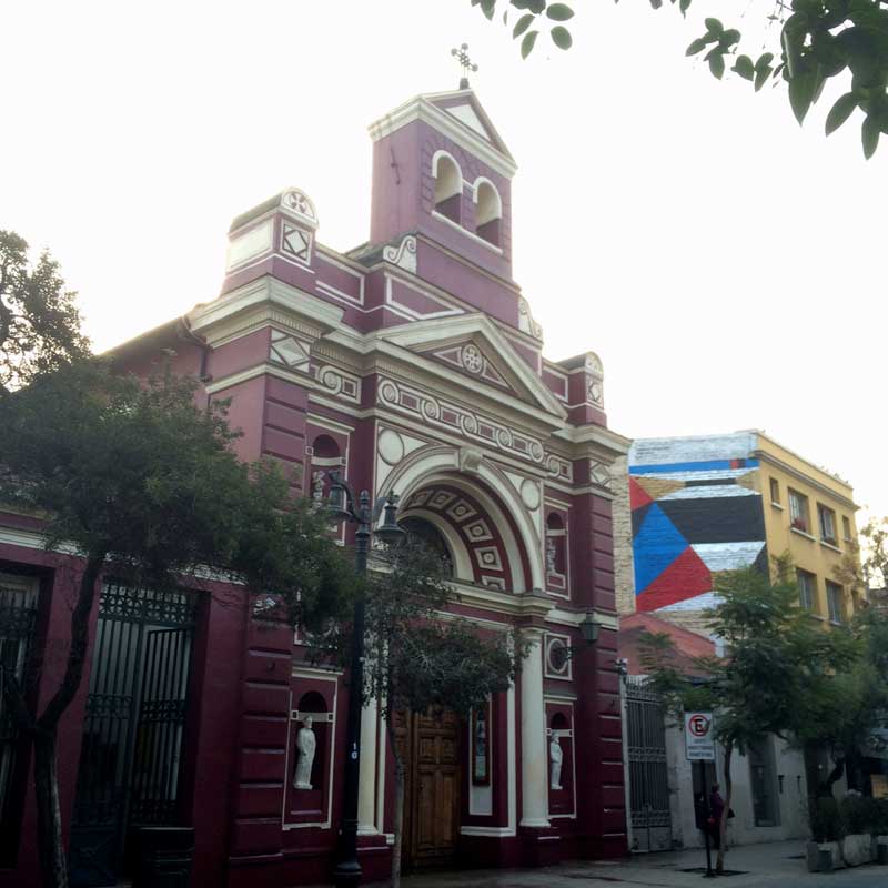 Resalta en la calle adoquinada la iglesia de la Vera Cruz, construida entre 1852 y 1857, levantada en lo que habría sido parte del solar de Pedro de Valdivia, fundador de Santiago en el siglo XVI. El templo de una sola nave. En su altar mayor conserva la imagen de un Cristo, obsequio del mismísimo Emperador de España que le entregó a los religiosos Mercedarios que llegaron a Chile junto a Valdivia.