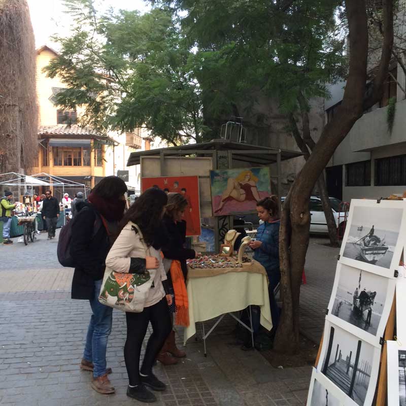 El barrio Lastarria hoy es un recorrido imperdible para quienes buscan gastronomía de calidad, tiendas de arte y buenos café. Pero nuestro recorrido es mostrar la rica muestra de pequeños puestos callejeros que se instalan diariamente en una explanada al costado del Centro Cultural Gabriela Mistral GAM ex edificio UNCTAD y que albergó por décadas al Ministerio de Defensa.