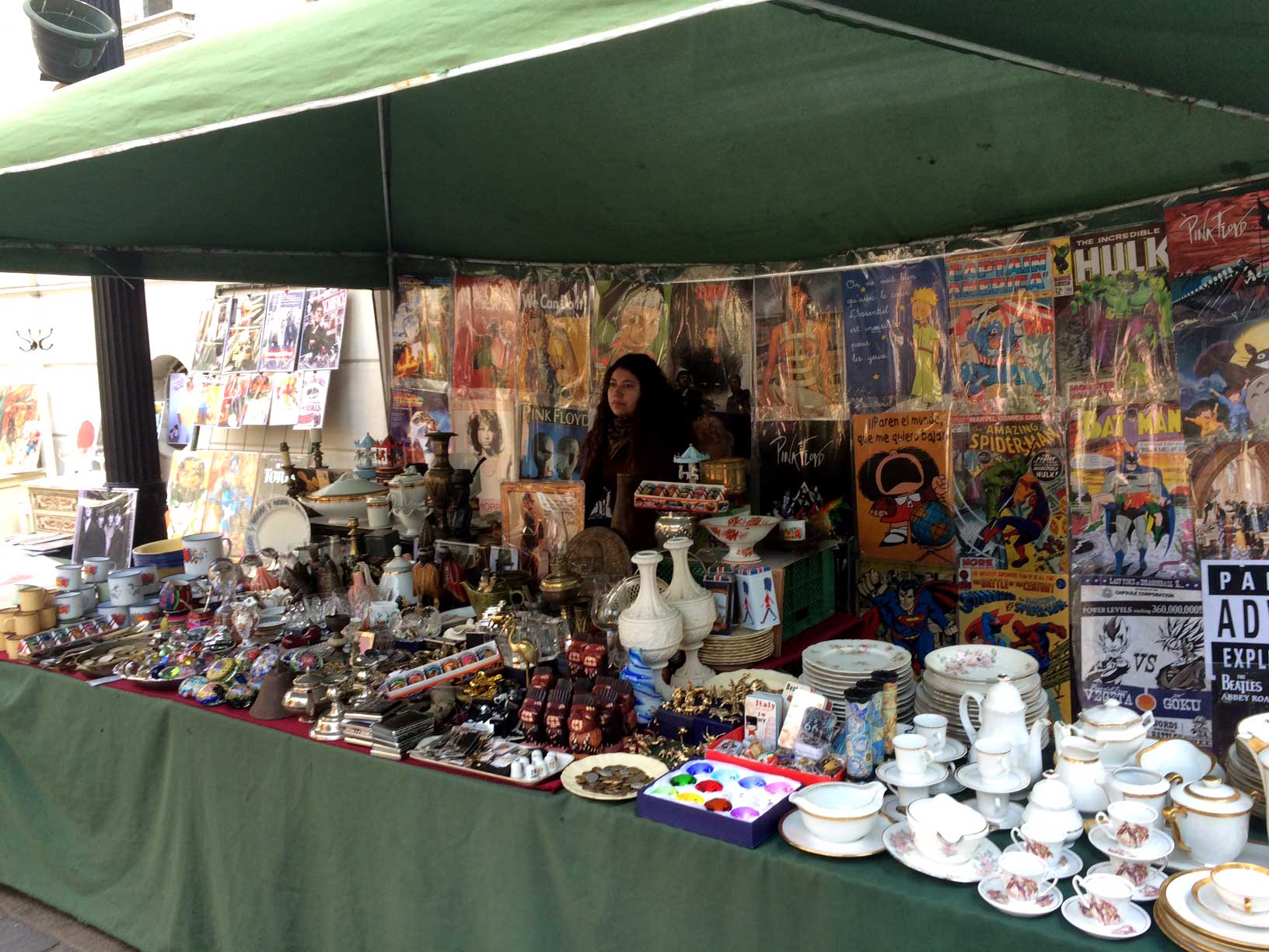 En este espacio se distribuyen una decena de puestos con anticuarios, curiosidades y nostalgias.