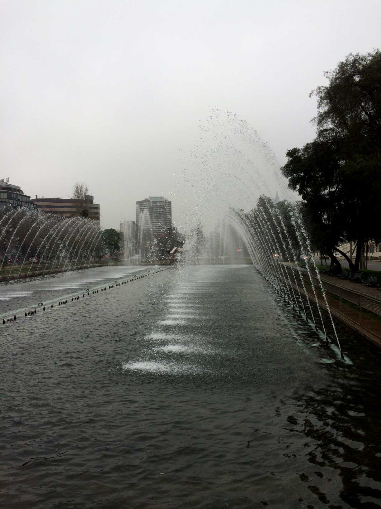 La que sí se mantiene bastante cuidada y enrejada es la fuente de las aguas danzantes de la Plaza de la Aviación en plena avenida Providencia, que se ha tornado en un lugar de peregrinaje para los recién casados que acuden a la fuente de aguas de colores a pedir deseos de buena suerte.