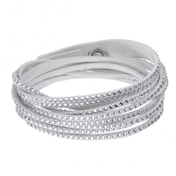 Esta pulsera Slake Gray Pulsera de 36 cm ($64.990) destaca por tener cristales transparentes Alcántara gris claro y cuenta además con un cierre de botones de cristales transparentes que permite ajustar su tamaño.