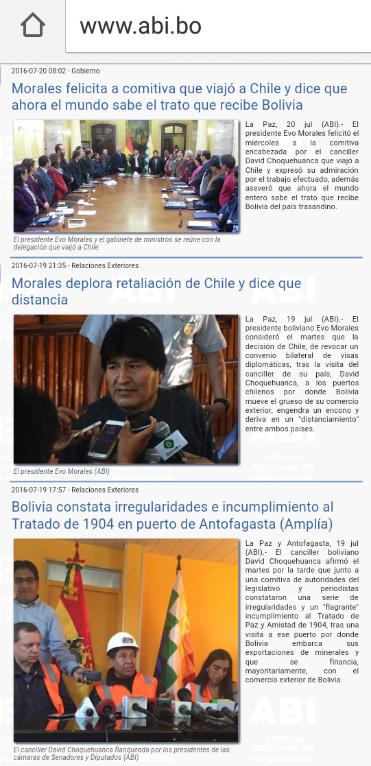 Reiterando que la visita «no es ninguna provocación», Morales felicitó a la delegación y agregó que «felizmente con esta visita, gracias a esta delegación, ahora el mundo entero sabe qué trato recibimos de Chile, especialmente de algunas autoridades, por eso hermano canciller felicitar a nombre del prueblo boliviano, he recibido muchos mensajes de felicitación por esta delegación que ha viajado a puertos chilenos que antes eran bolivianos«.