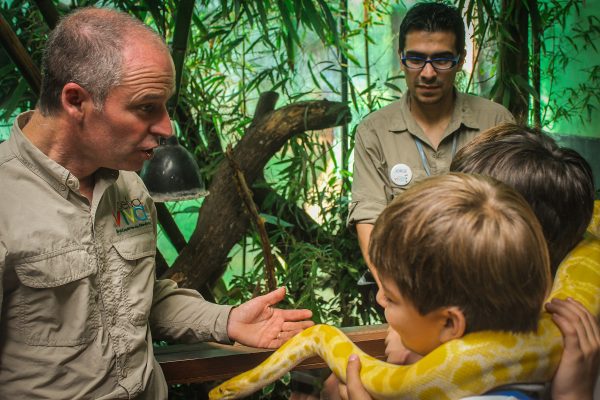Otra de las novedades para este año, dentro de los habitantes de este recinto ubicado en el Parque Araucano, “son unos escorpiones traídos desde Estados Unidos de criaderos autorizados que corresponden al tipo más grande del mundo”, agrega Ugarte. También habita un tucán que los niños pueden alimentar con fruta deshidratada, además de simpáticos guacamayos que saludan y se sacan fotos con quienes lo deseen. “Aquí estamos llenos de loros, serpientes, tucanes y lo importante es que todo se toca, es una interacción directa con los animales. Y para quienes amen las plantas se van a encontrar con una impresionante variedad de orquídeas tropicales, pueden ver cómo crecen, además las piñas tropicales y las de isla de Pascua, entre un sin fin de especies”, recalca Ugarte.