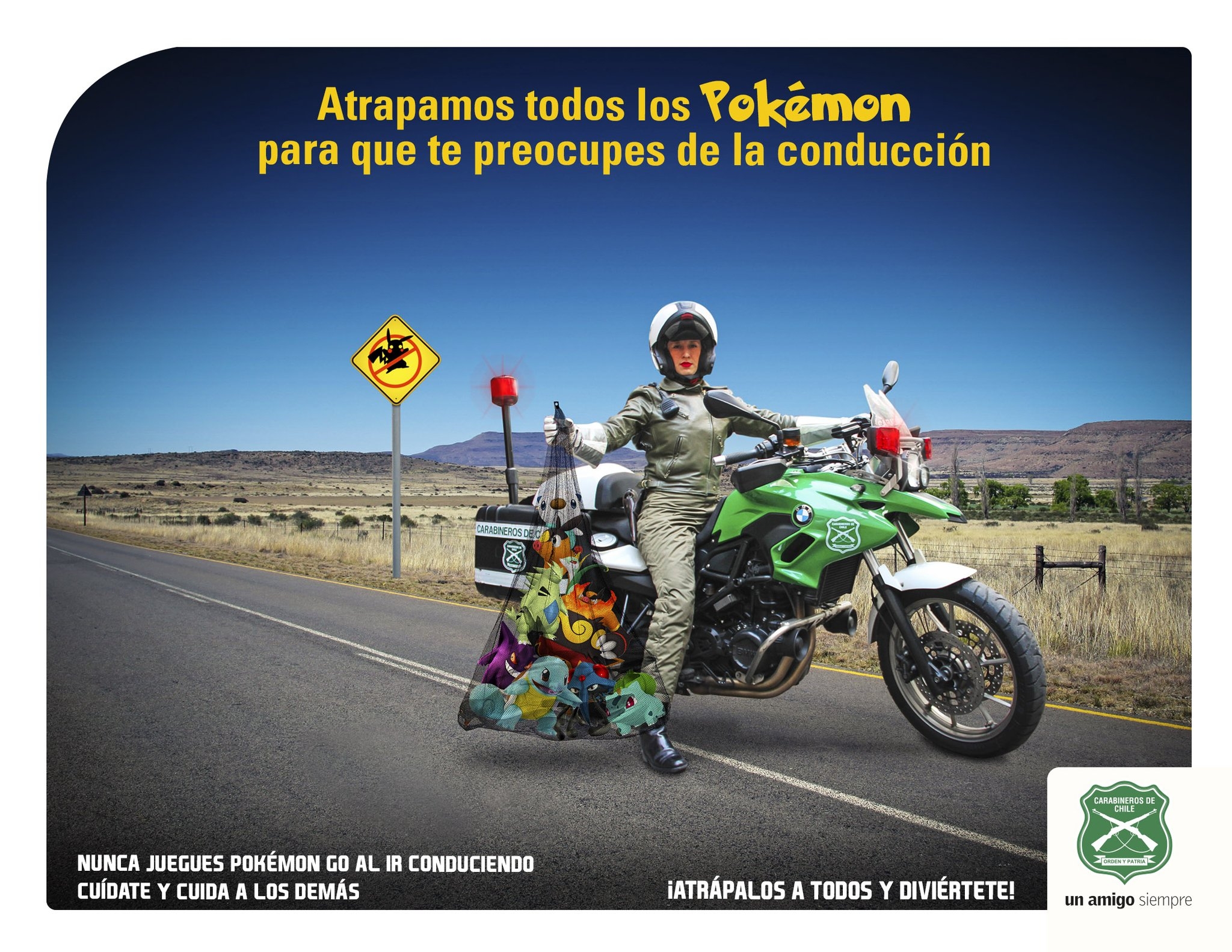 El arribo de Pikachu y sus amigos a tierras nacionales llevó a que Carabineros iniciara una campaña para así evitar accidentes y robos mientras los jugadores recorren las calles de las ciudades buscando figuras Pokemon.