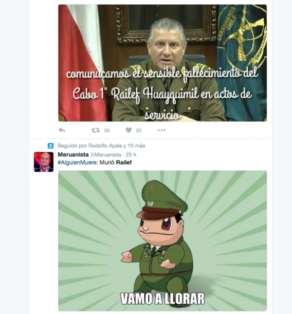 En su website, Mega abrió un libro de condolencias virtual para dejar mensajes de despedida al cabo Huaiquimil.