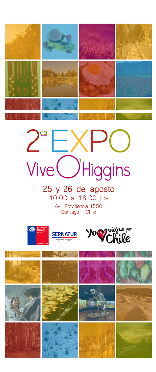 Talabartería, tejidos en lana de oveja, artesanía, productos gourmet, vinos, clínica de cueca, talleres de orfebrería en cobre, cocina de productos típicos en vivo, concursos y muchas más sorpresas, estarán presentes en la versión 2016 de la Expo “Vive O’Higgins”, feria de turismo, organizada por la Dirección Regional de Sernatur O’Higgins, conjuntamente con municipios, gremios y tour operadores de la zona.