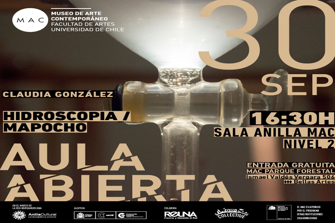 Aula abierta es una de las iniciativas con las que EducaMAC realiza un diálogo entre las temáticas del arte contemporáneo, a través de de clases abiertas y gratuitas, dictadas por artistas o curadores que participen en las exhibiciones del MAC. En este contexto, Claudia González, artista de Hidroscopia/Mapocho, se explayará en su proceso creativo interdisciplinario, las múltiples salidas a terreno y cómo consiguió crear un mapa visible e invisible del río Mapocho.