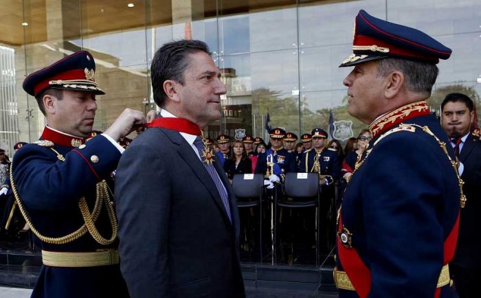 Además, este lunes, el ministro Gómez, fue condecorado con la medalla “Ejército Bicentenario”, que le otorgó el Ejército y que le impuso el propio general Humberto Oviedo.