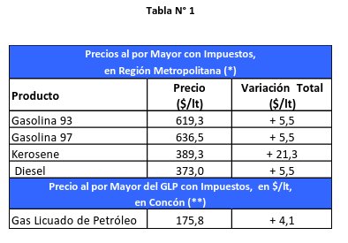 En su reporte, la compañía anunció el aumento en $5,5 de las bencinas de 93 y 97 octanos.