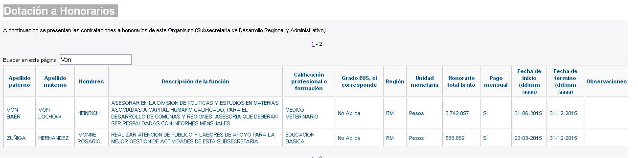 «Asesoría que deberá ser respaldadas con informes mensuales», detalla la sección Dotación a Honorarios de la página web de la Subdere. Además, la plataforma consigna que su contratación es del 01 de junio al 31 de diciembre de 2015.