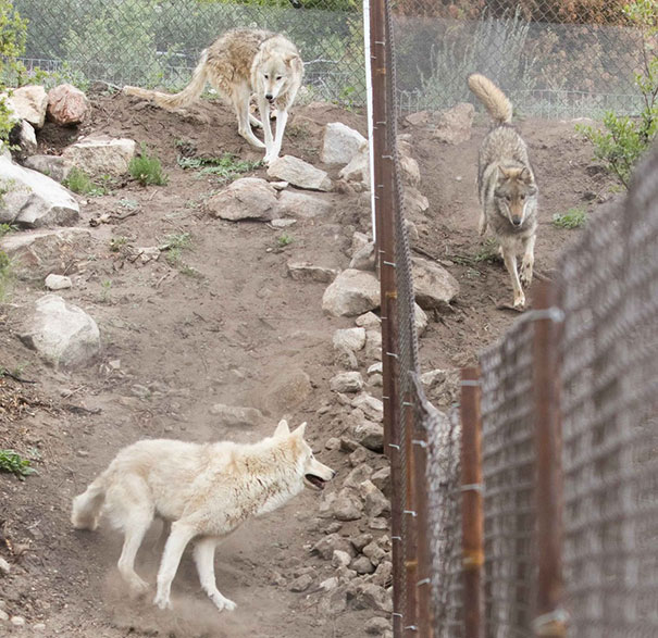Esta conducta es típica para los lobos – Neón resultó ser el perro con mayor cantidad de genes de lobo. El cachorro no solamente tenía rasgos físicos de un lobo, como los ojos ámbar y un pelaje áspero, pero también demostró conducta de un lobo que no está adaptado para llevar una vida de un perro domesticado. El dueño se dio cuenta de esto y aceptó que se llevara a Neón a un refugio especial para perros lobo. ¡Allí Neón está feliz por fin al encontrar a su manada que deseaba!