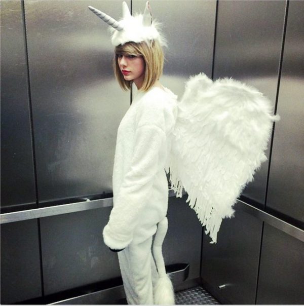 Taylor Swift no es de las famosas que más se disfrazan, pero cuando lo hace se lo muestra a sus seguidores en las redes sociales. Su elección en 2014 fue una mezcla entre unicornio y Pegaso.