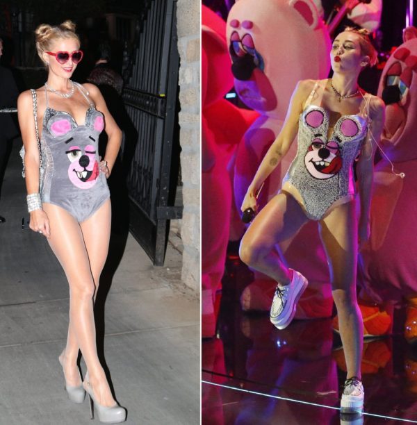 Tras la polémica presentación de Miley Cyrus en los MTV se convirtió en la protagonista del año. Así que París Hilton llegó a la fiesta de Halloween que organizó Hugh Hefner en la mansión Playboy con un body de oso y las gafas de corazón que utilizó la cantante.