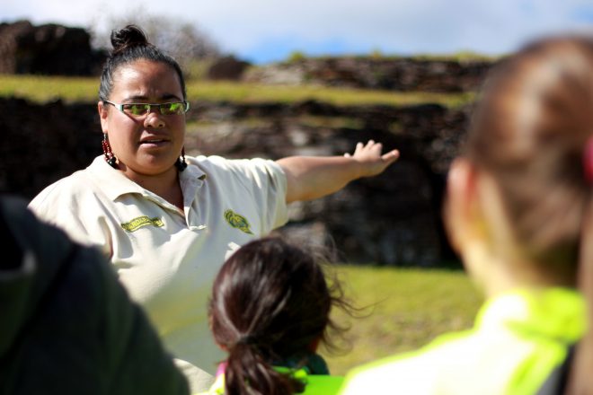 Una de las guardaparques más emblemáticas del Parque Nacional Rapa Nui es es María Chávez, quien durante más de 30 años ha estado dedicada al resguardo del Centro Ceremonial de Orongo, conociendo este sector como la palma de su mano.