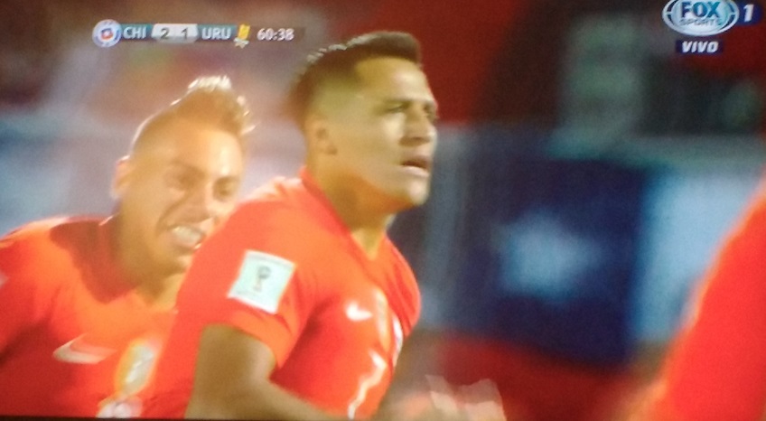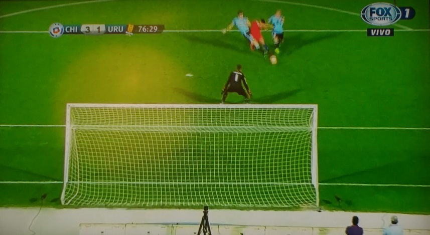 En los 75´ un pelotazo largo para Alexis Sánchez, el delantero corrió ante la marca de dos defensas uruguayos,entró al área y cayéndose remató para el 3-1. Con ese gol, el Niño Maravilla quedó a uno de superar a Marcelo Salas como máximo goleador de La Roja. El Matador tiene 37 goles con la Selección.