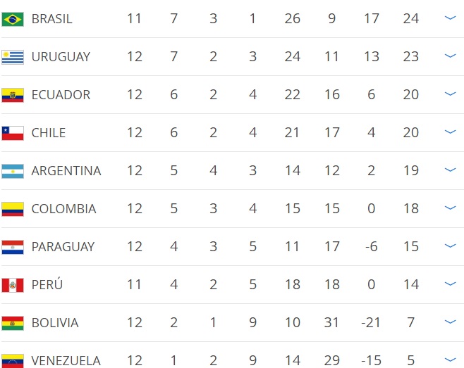 Con este resultado, Chile llegó a los 20 puntos y ascendió al cuarto puesto de la zona de clasificación directa para el Mundial de Rusia 2018.